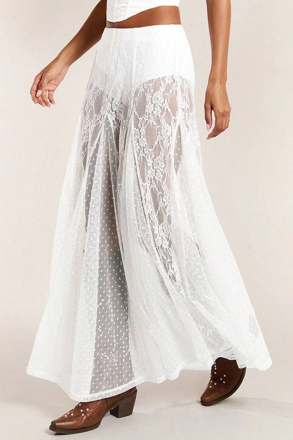 Your new statement piece, this maxi skirt boasts elegant lace details for a sophisticated touch. Its flowing silhouette effortlessly enhances your style, perfect for both daytime outings and evening events.